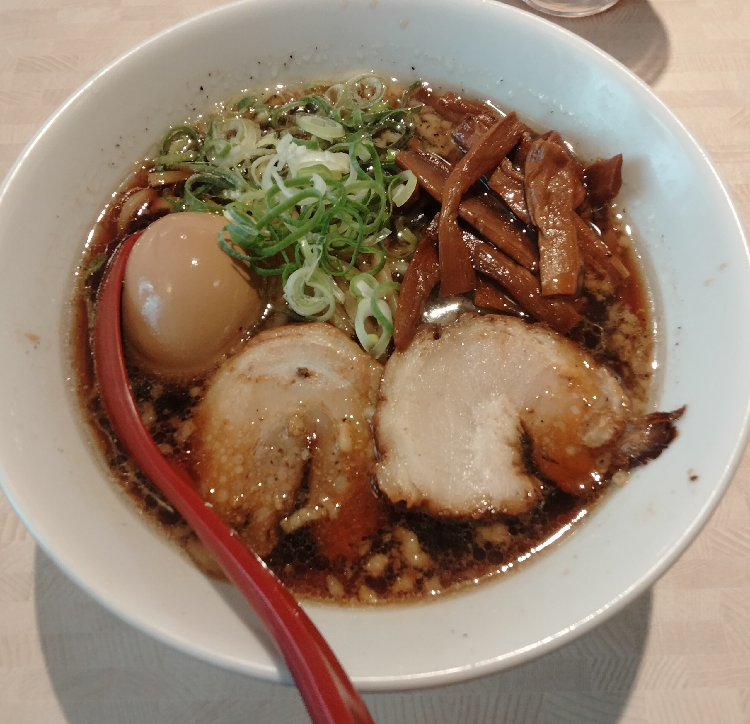 富山ブラック風にアレンジしたく、卓上調味料の黒胡椒をこれでもか!というくらい足してみました!