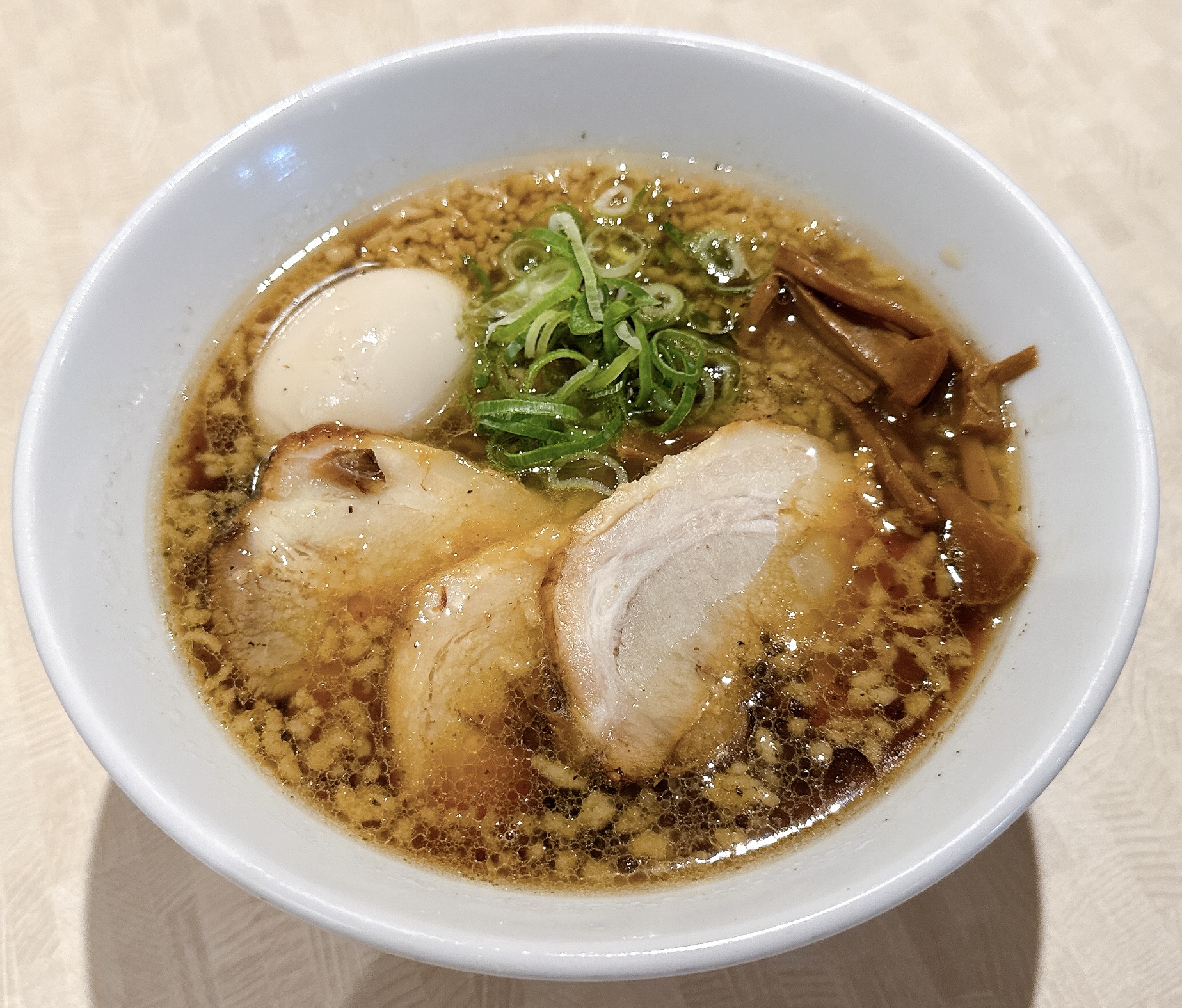 スープは焦がし醤油をベースに、香ばしさと旨みがギュッと凝縮。