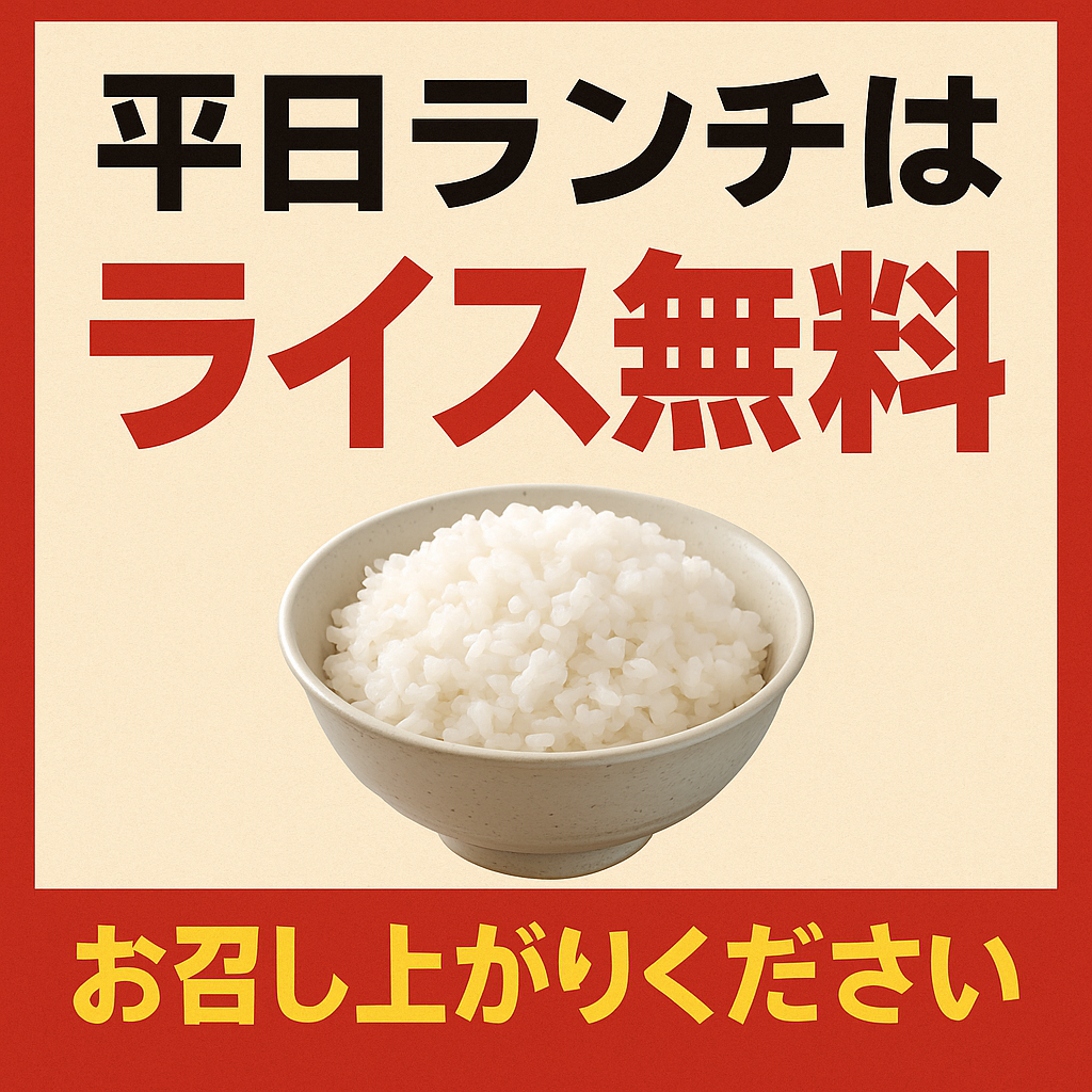 ライス小・中・大のいずれか1つを無料でお付けします。