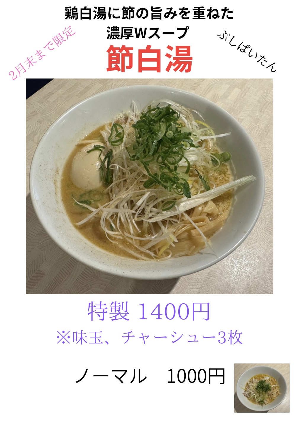 毎月提供していた限定らーめんですが、毎月の提供は終了致します。
